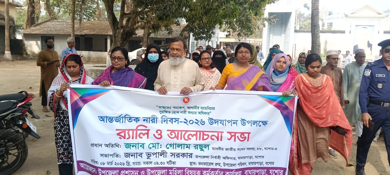 বাঘারপাড়া (যশোর) প্রতিনিধি :যশোরের বাঘারপাড়া উপজেলায় যথাযোগ্য মর্যাদা ও নানা আয়োজনের মধ্য দিয়ে আন্তর্জাতিক নারী দিবস উদযাপন করা হয়েছে। দিবসটি উপলক্ষে উপজেলা প্রশাসনের উদ্যোগে এক আলোচনা সভা অনুষ্ঠিত হয়।