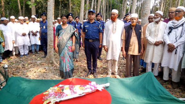মরহুমের জানাজা নামাজে স্থানীয় মুক্তিযোদ্ধা, জনপ্রতিনিধি, রাজনৈতিক নেতৃবৃন্দ, সামাজিক সংগঠনের প্রতিনিধি এবং বিভিন্ন শ্রেণি-পেশার বিপুল সংখ্যক মানুষ অংশগ্রহণ করেন। জানাজা শেষে বাংলাদেশ সরকারের পক্ষ থেকে রাষ্ট্রীয় নিয়ম অনুযায়ী তাকে গার্ড অব অনার প্রদান করা হয়। পরে যথাযোগ্য সম্মান, মর্যাদা ও ধর্মীয় আনুষ্ঠানিকতার মধ্য দিয়ে পারিবারিক কবরস্থানে তাঁর দাফন সম্পন্ন করা হয়।